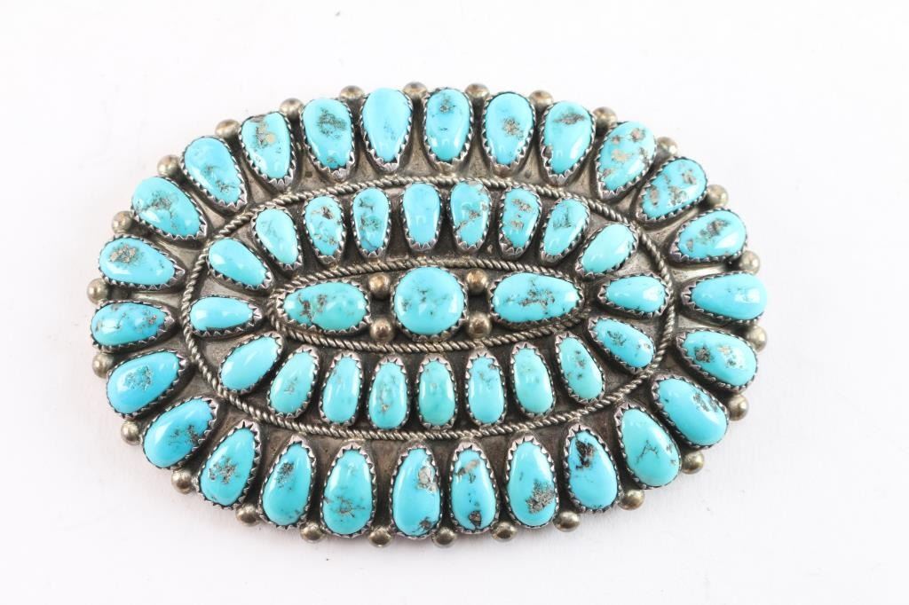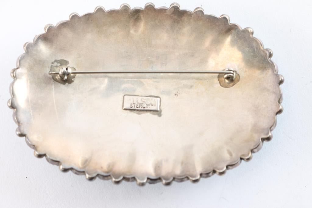 Set in sterling silver. Maker marked Wilson. Measures 4 1/2" x 3".