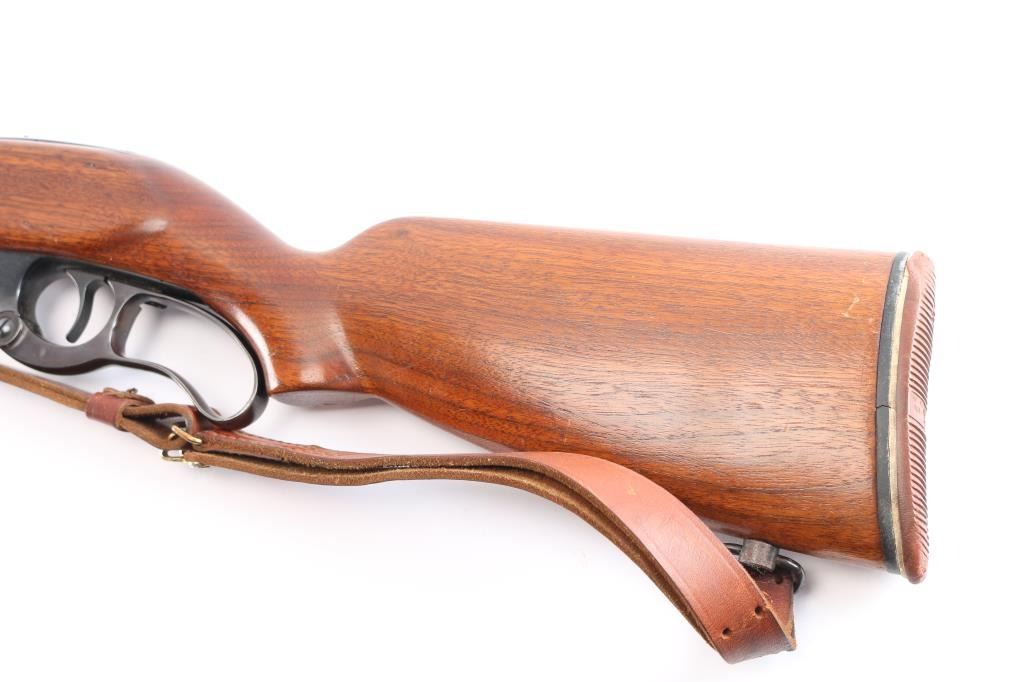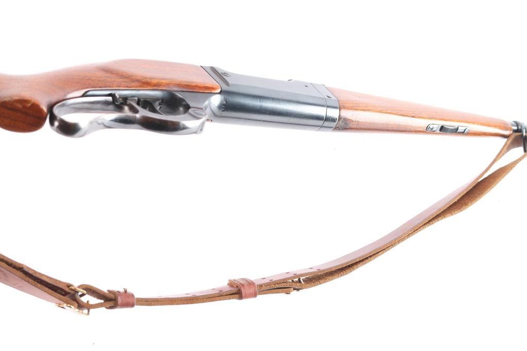 Vintage lever-action rifle manufactured in 1915. Rare caliber model 99 in .250-3000 Savage. Rifle has been refinished. Features a solid frame with a pistol grip and a Schnabel-tipped forend, reblued finish, checkered walnut forend & curved wrist shoulder stock with non-factory thin rubber bottplate, 22" tapered barrel, raised bead/blade front sight, semi buckhorn adjustable rear sight, fixed rotary magazine with brass cartridge counter, lever lock, cocking indicator. Tang drilled/tapped for sight. Bore is very good/bright, strong rifling. Retains about 92% old reblued finish, with handling marks, edge losses,the reblued lever has some handling loss and some scratches/dings are visible on the refinish on the receiver. Bolt has bright surface. Wood is very good/sound with minor dings/scratches, appears to have been sanded at some point with traces of the checkering on the forearm visible, has been varnished. Action is smooth.
