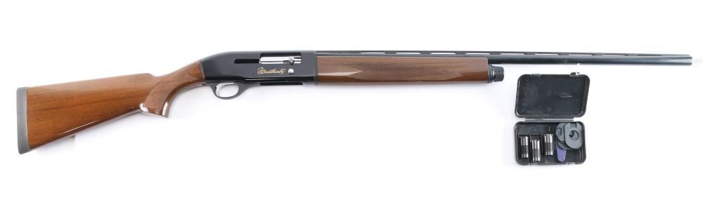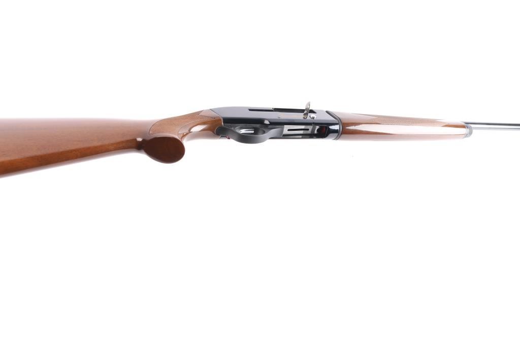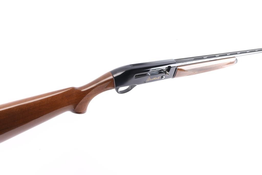 Manufactured in Turkey, the Weatherby SA-08 Upland Semi-Auto Shotgun features a 28" blued vent rib barrel with brass sighting bead, extended SKT choke installed, walnut stock and forend with a satin finish. 22 LPI checkering on the pistol grip and forend, dual-valve, gas-operated system, with a chrome-plated bolt, 2-3/4" and 3" shells. A black CNC-machined aircraft-grade alloy receiver. Comes with a set of 3 additional choke tubes (Full, Mod, Imp. Cyl., shims and wrench. A drop out trigger assembly, chrome-lined barrel. Bore is excellent, shot is in like new condition.