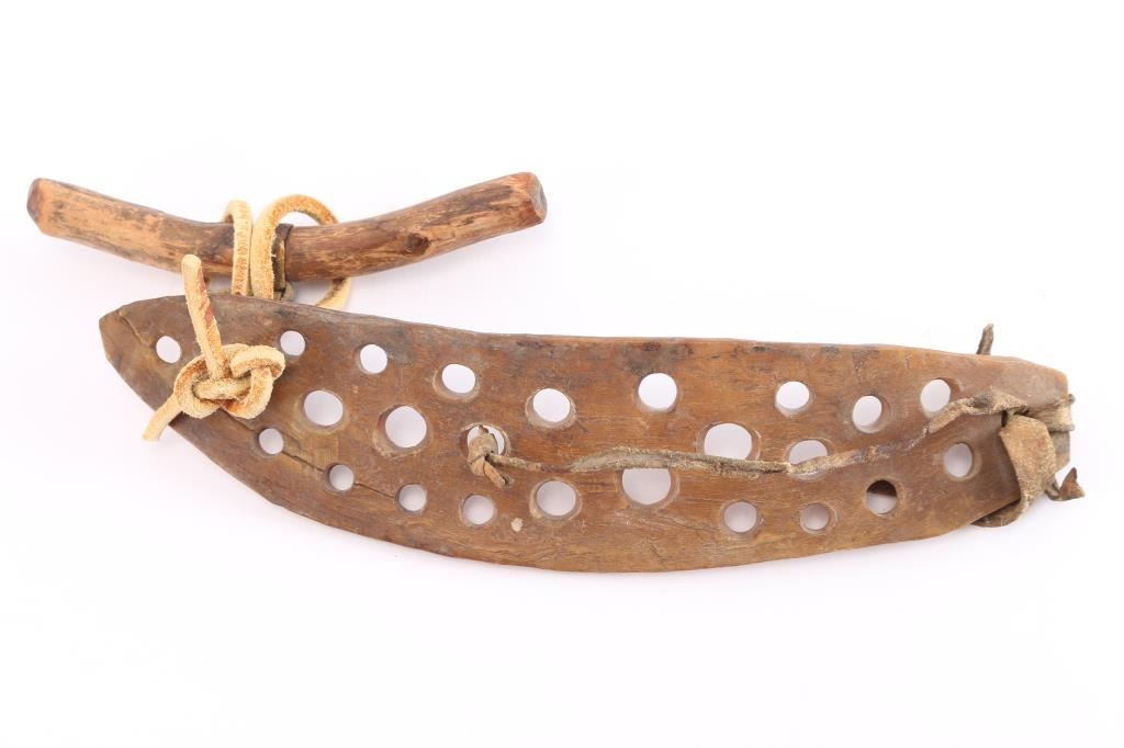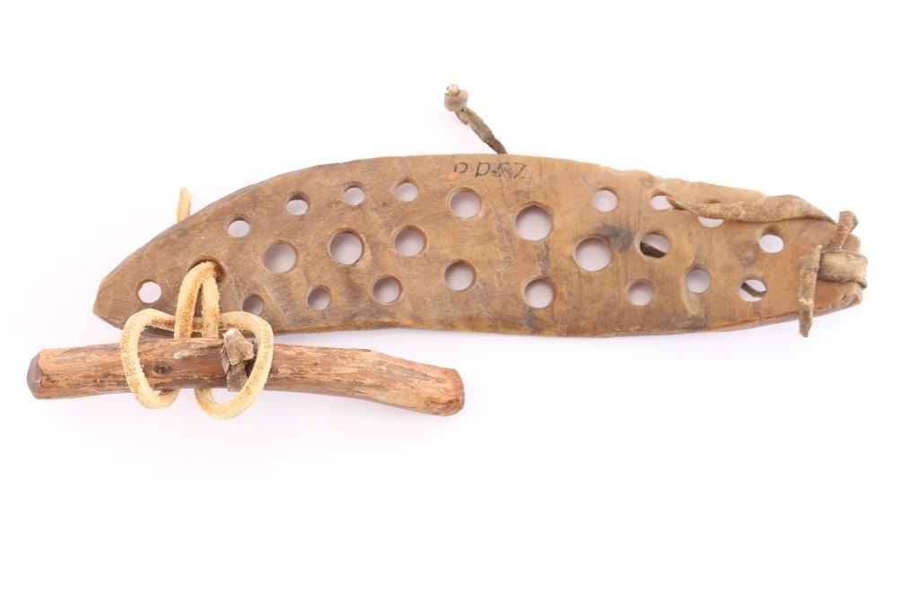 Bone construction with holes. 8" x 2". Said to ward off evil spirits; tool used by medicine man.