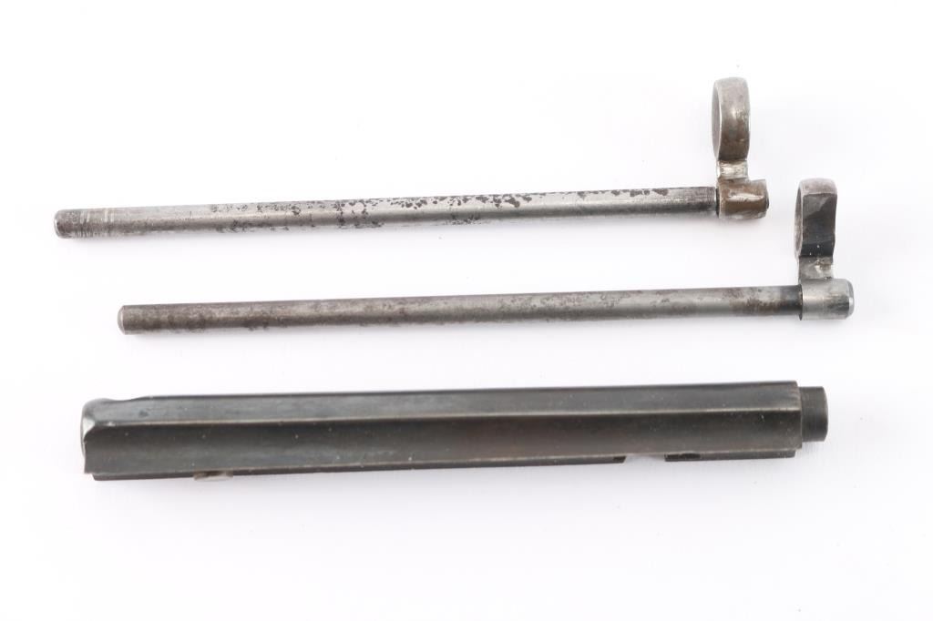 Blued 4 1/8" length. blued 1st type, one screw and separate dowel pin entering both barrel & tube, full rounded tip, no rear slot. Appropriate for U.S. martially marked tp serial number in the low 19,000's, civilian SAA's below SN 22,573. early 1878. "Bullseye" ejector, 1st type, through 1881, earlier than SN: 73,000. Also comes with a 2nd Style / "Crescent" (approx. 1882–1940s). From the John Kopec collection.