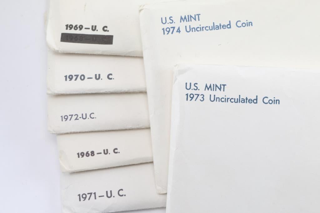 Seven total, dates from 1968 to 1974. In original envelopes.