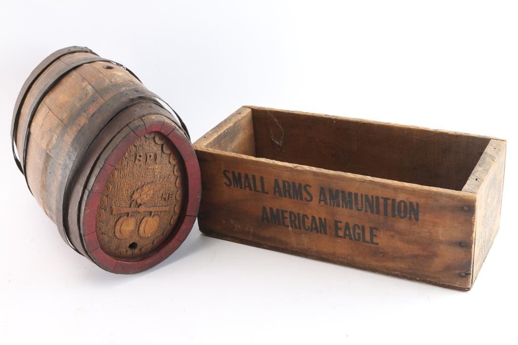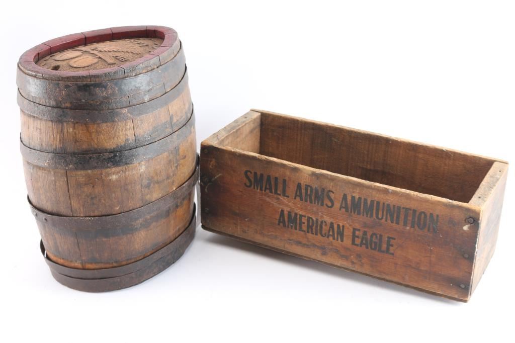 Lot 1029 Oval Wine Barrel & Small Ammo Crate Lot
