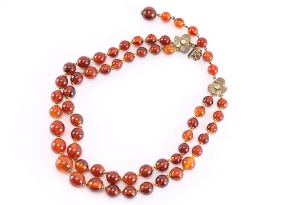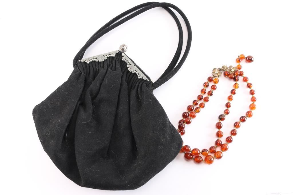Lot 1072 Miriam Haskell Amber Necklace & Vintage Purse.