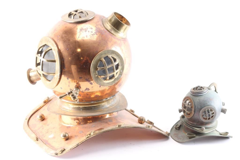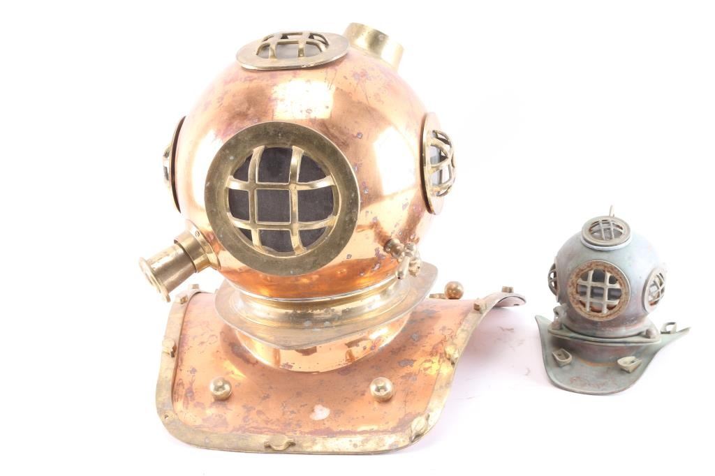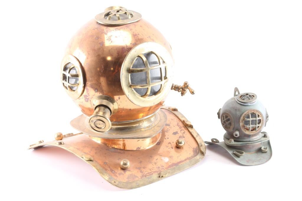 Full size, also included is a miniature replica diver's helmet. Great nautical decorators.