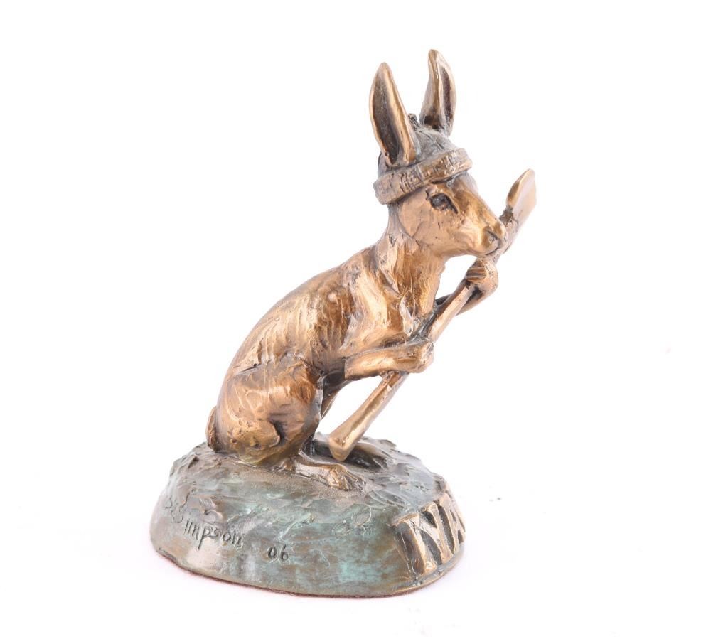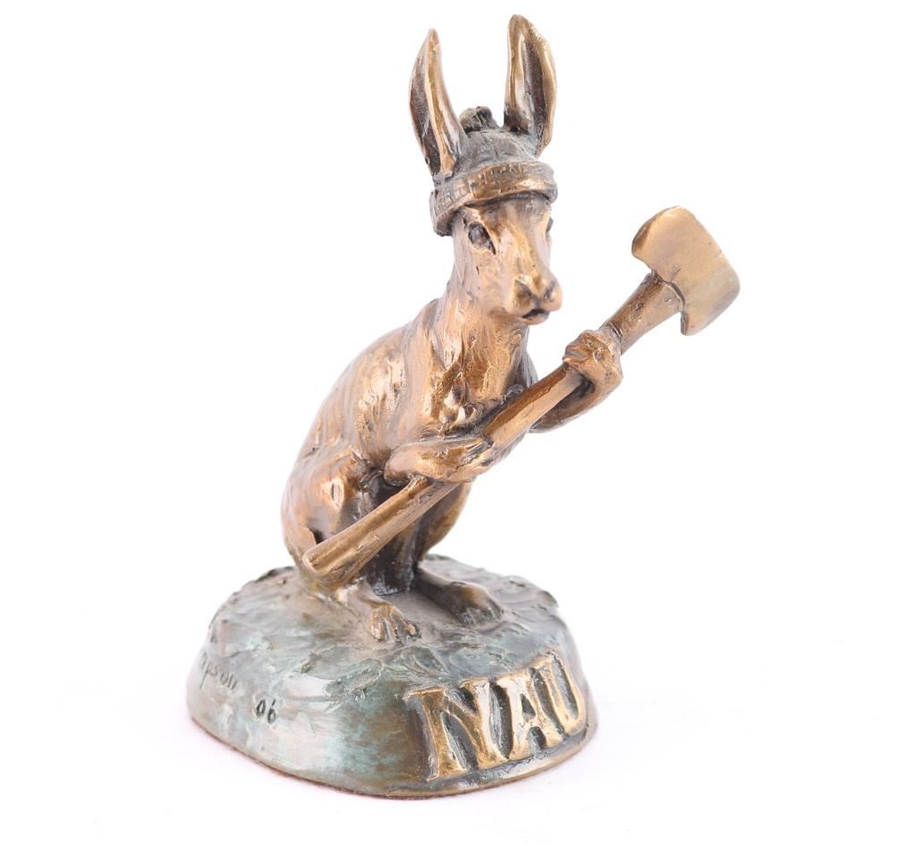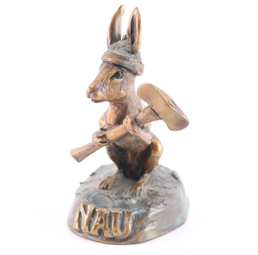 By Diana Simpson, depicting the NAU Lumberjack mascot, "Louie". Base of bronze states NAU. Measures 4"x2.5"x3".