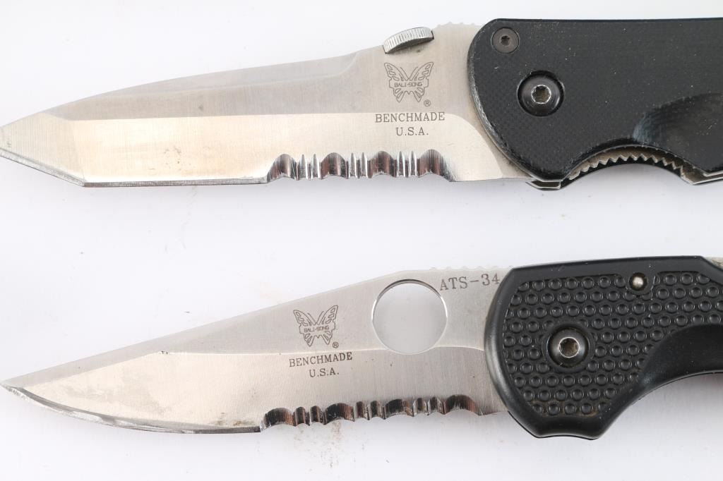 Includes the following: 1) Benchmade ATS-34 Lockback Folder. Length (Closed): 5-1/5”, composite handle, 3 1/2" partially serrated clip blade of ATS-34 steel