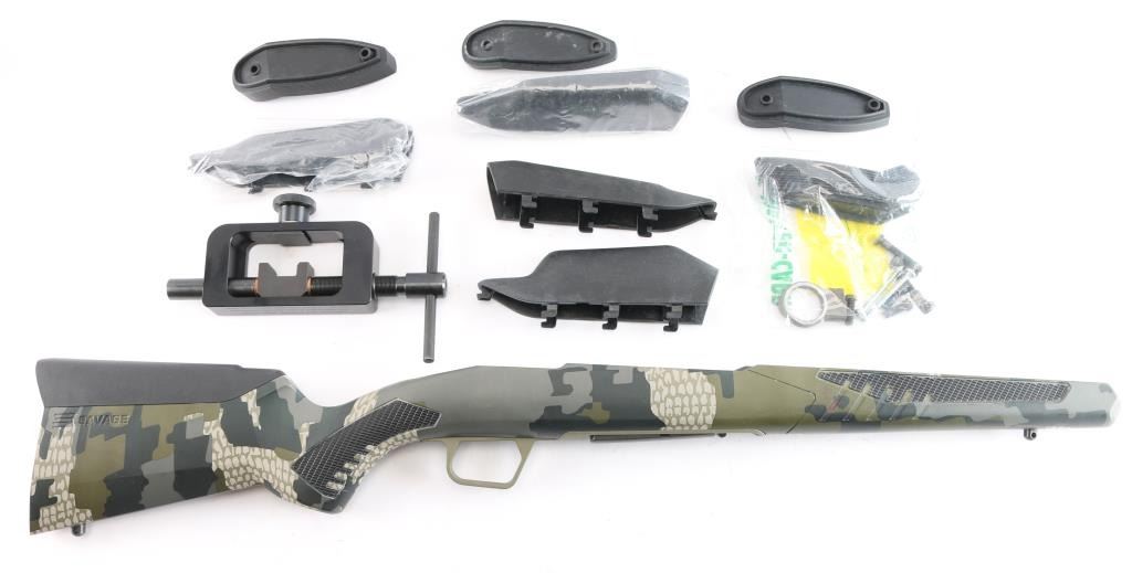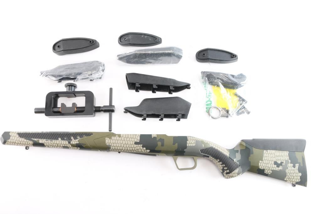 Includes: Glock rear sight pusher, (4) cheek rest, and (1) trigger guard plate, (1) Savage synthetic stock