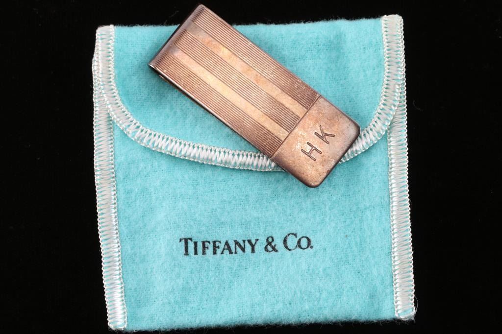Signed Tiffany & Co., sterling silver, .925 with Tiffany blue bag. Line design (retro 50's-60's) with H. K. engraved initials.