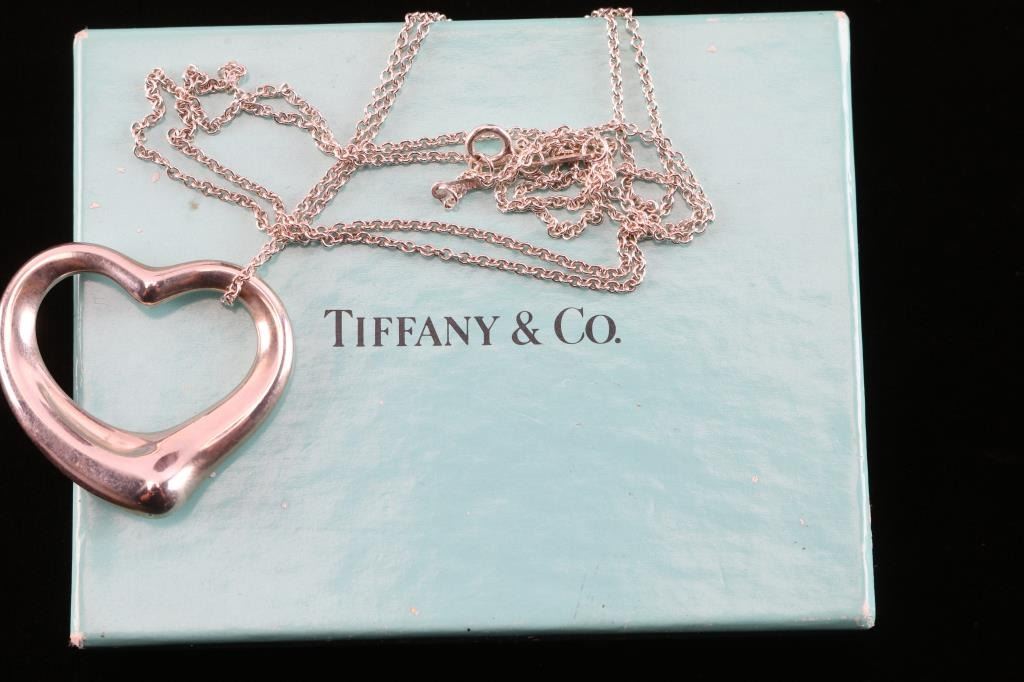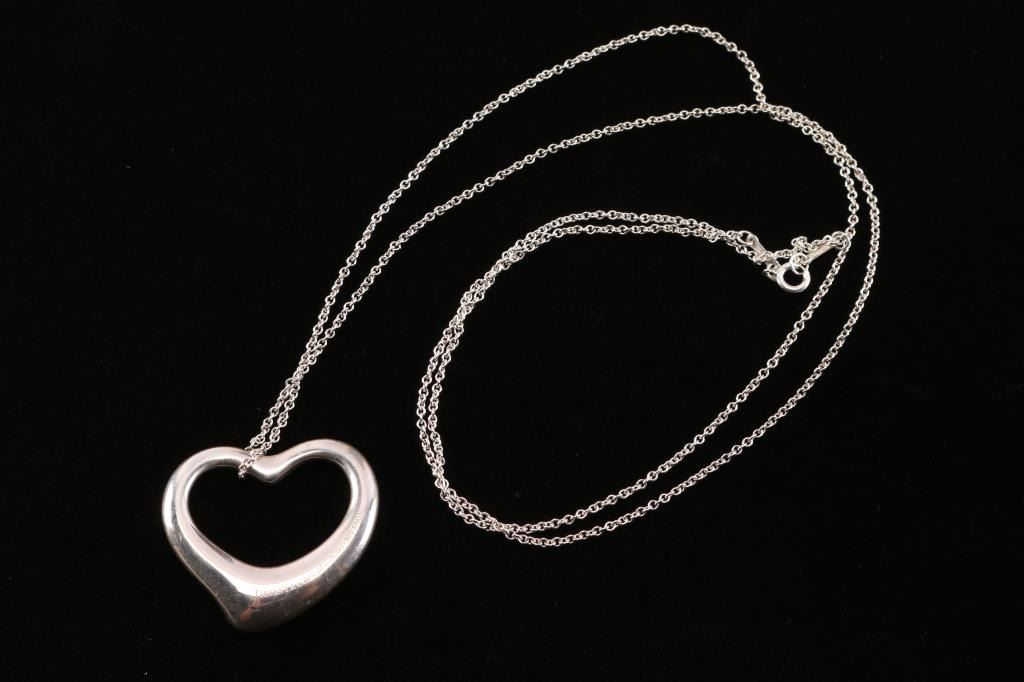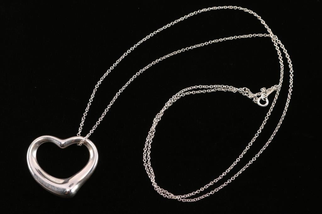 Lot 1265 Tiffany Sterling Silver Open Heart Necklace.