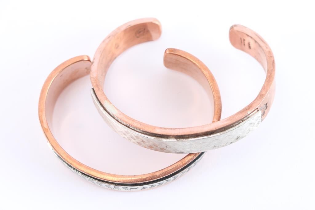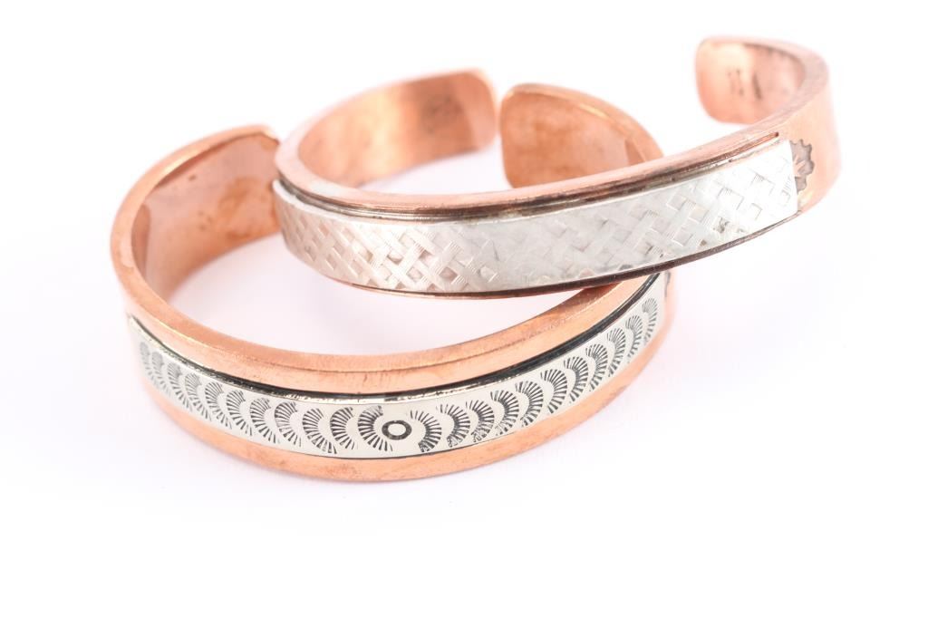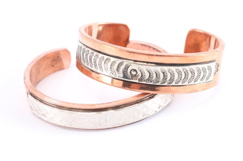 Heavy Copper Cuffs, Larger Sized, With Silver- Colored Stamped Design.