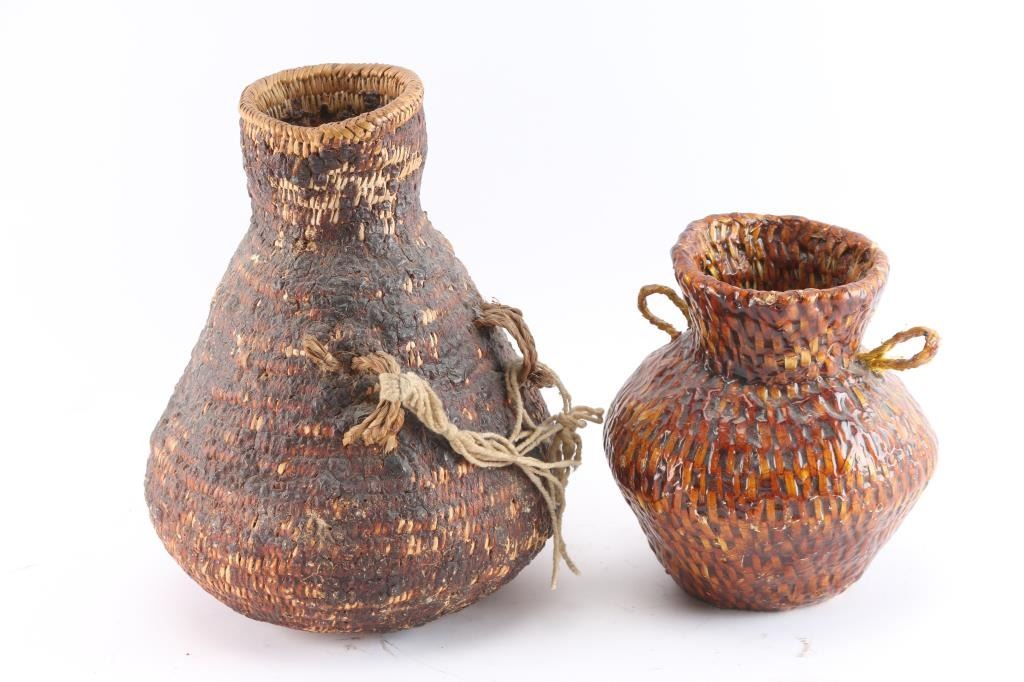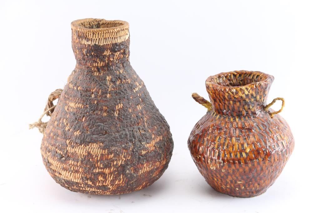 Lot 1392 Lot of 2 Apache Pitch-Covered Baskets.