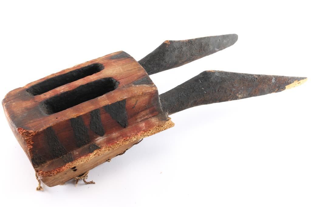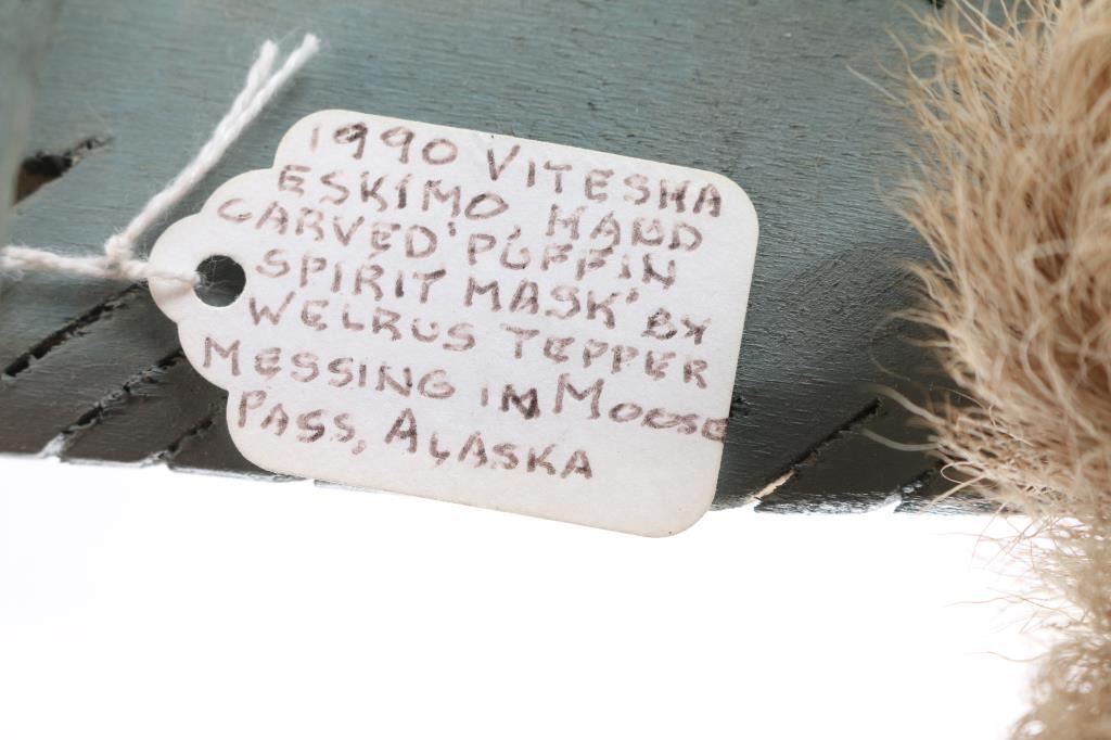 1) Tribal wood carved mask, possible Dogon or Bobo. Used in dances and rituals related to farming and or other community initiations. 2) Wood carved Puffin spirit mask, from Alaska.