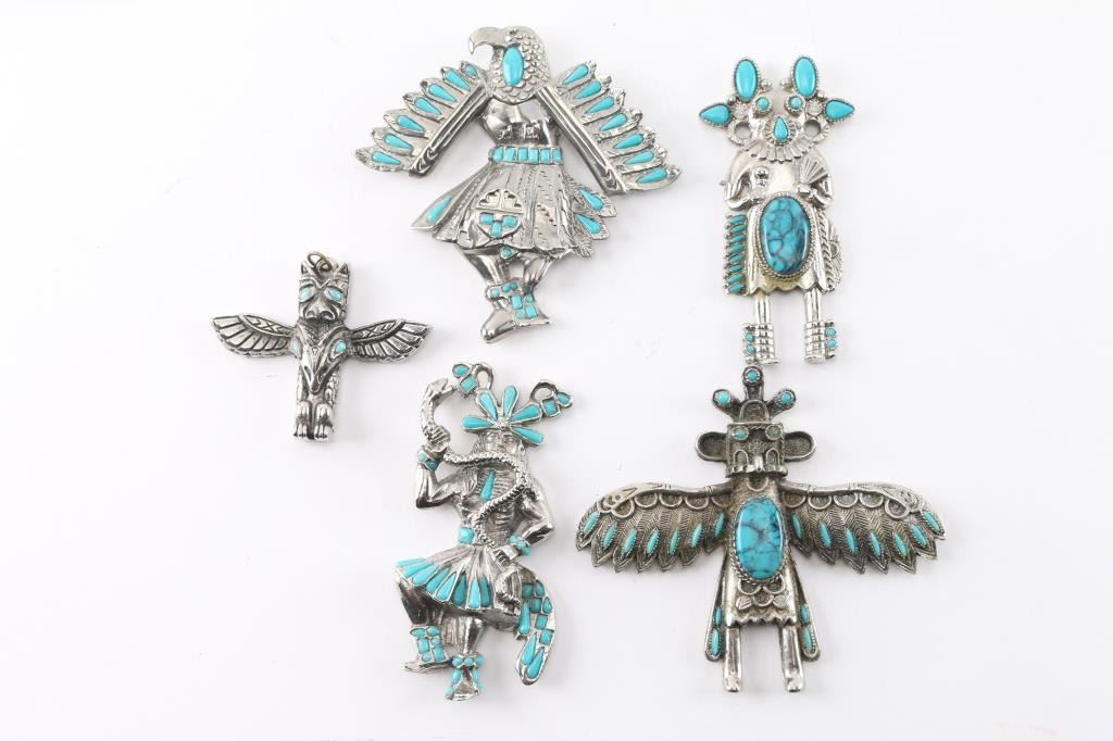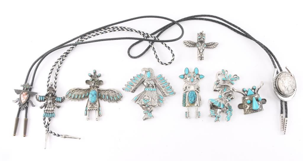 All are costume type, not sterling. One appears to have a coin at center. Three are on ties and 6 are centers only.