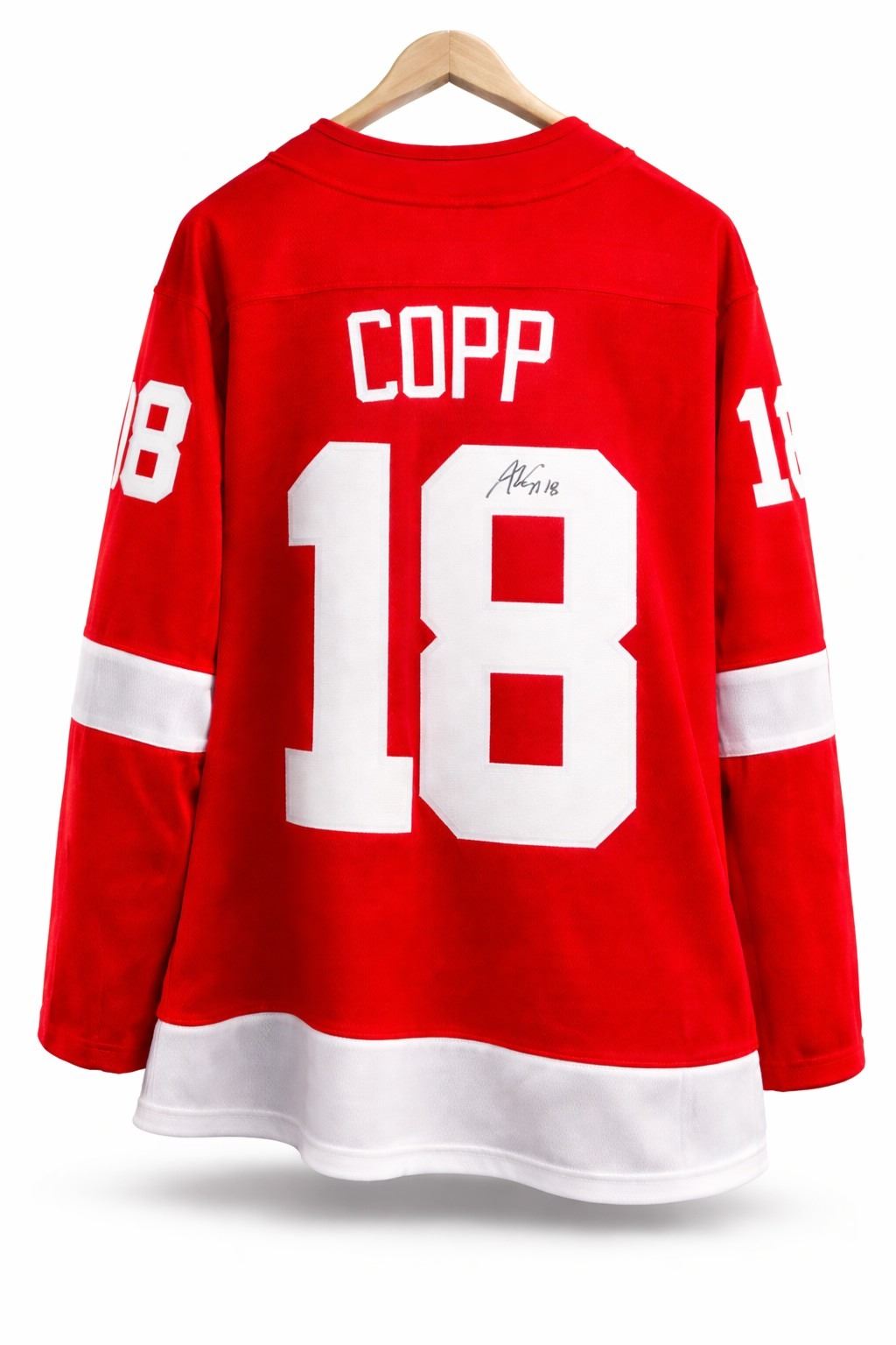 Take home a piece of Hockeytown pride with this official Detroit Red Wings #18 jersey signed by Andrew Copp. A key contributor to the Red Wings lineup, Copp is known for his leadership, versatility, and strong two-way play.