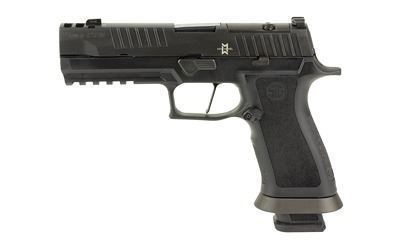The SIG SAUER P320MAX M.O.D. is a 9mm striker-fired pistol optimized for competition at the highest levels, specifically in the Carry Optics division. The pistol is built around a full length X-Series Polymer grip module with integrated grip weight and magwell sporting a flat blade trigger with Springer Precision magazine catch. The SIG Custom Works P320MAX slide was completely redesigned with a two port slide integrated expansion chamber for recoil mitigation with a matte black DLC slide finish with Max Michel engraving and enhanced serrations allowing for an easily customized shooting experience. Finishing up with the included Hogue Heavy Grit Max Michel Edition Wraptor Grip and Sig Sauer's XRay3 Day/Night Sights, the P320 Max M.O.D. delivers podium level results with the Sig Sauer level reliability you expect.