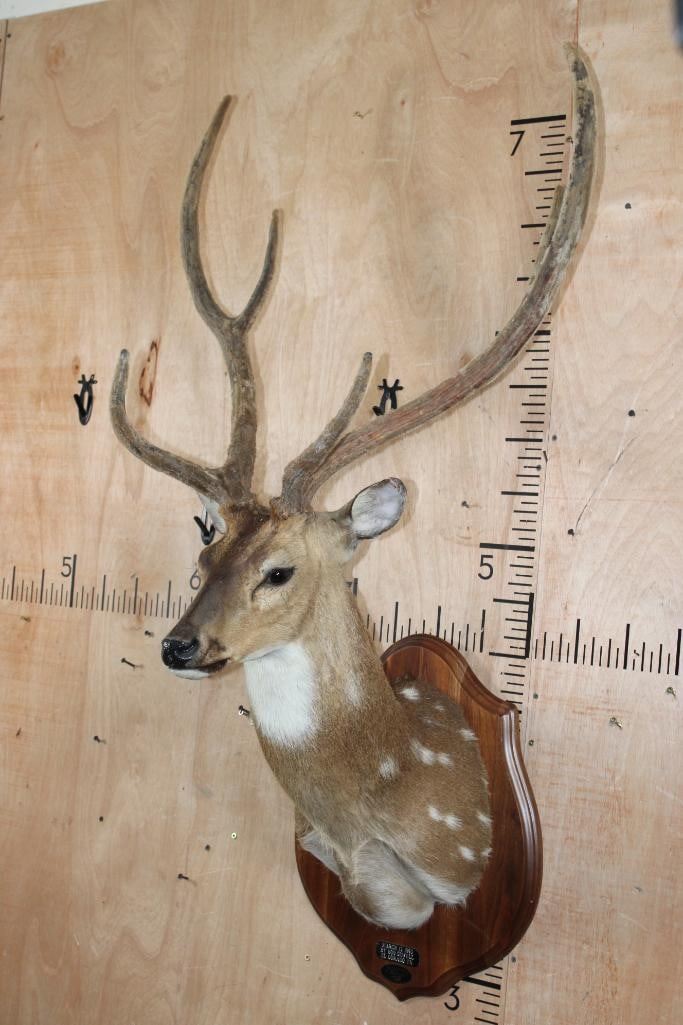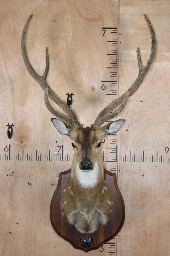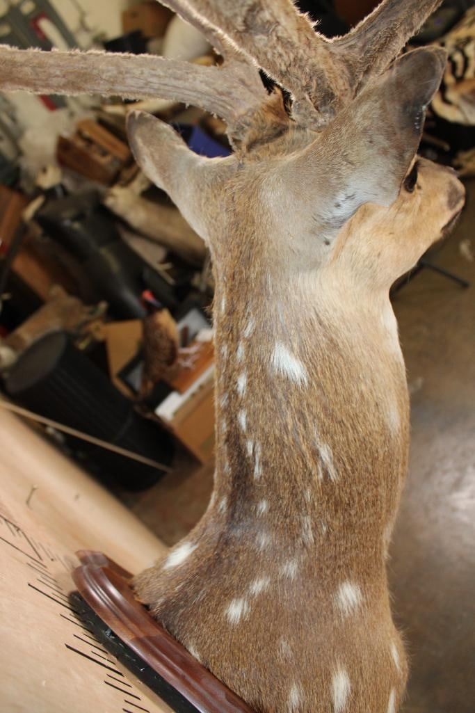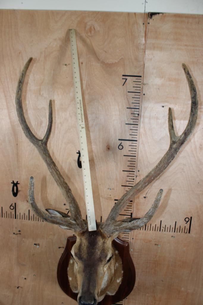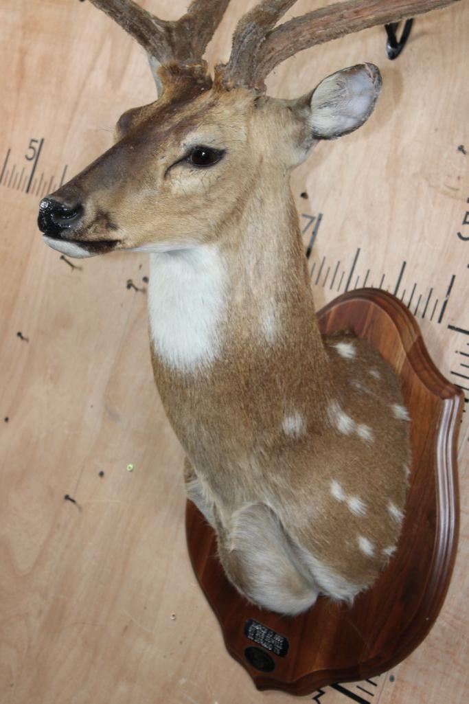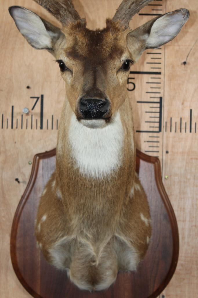 Lot 72 Big AXIS DEER Shoulder Mount in Partial Velvet on a Wood Plaque
