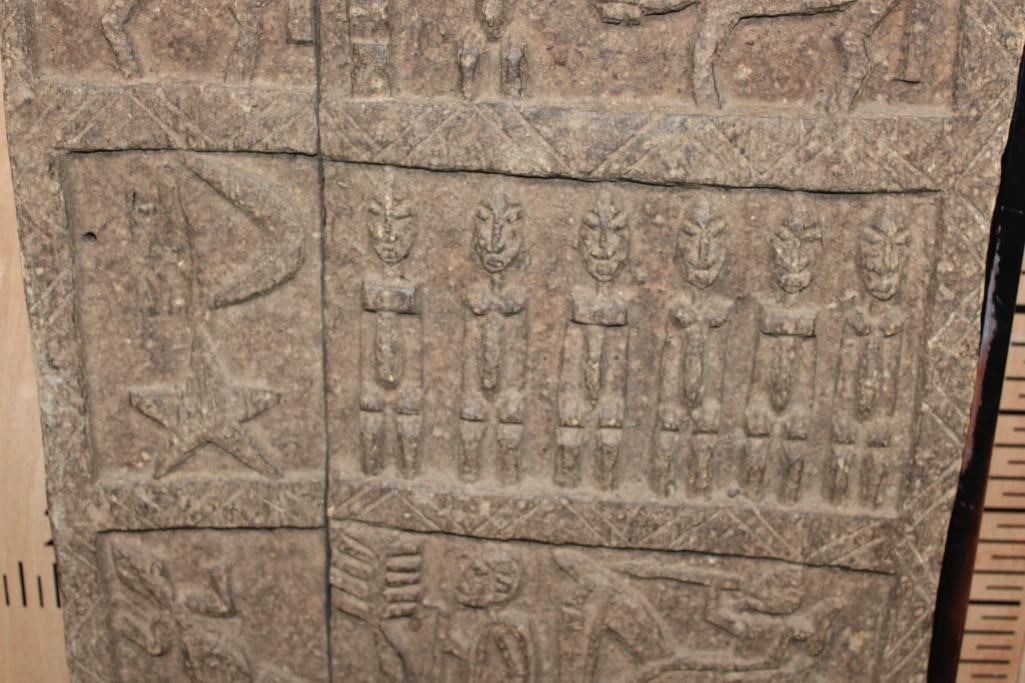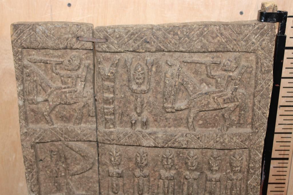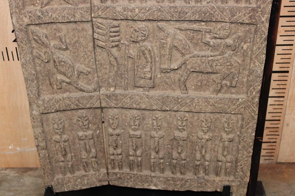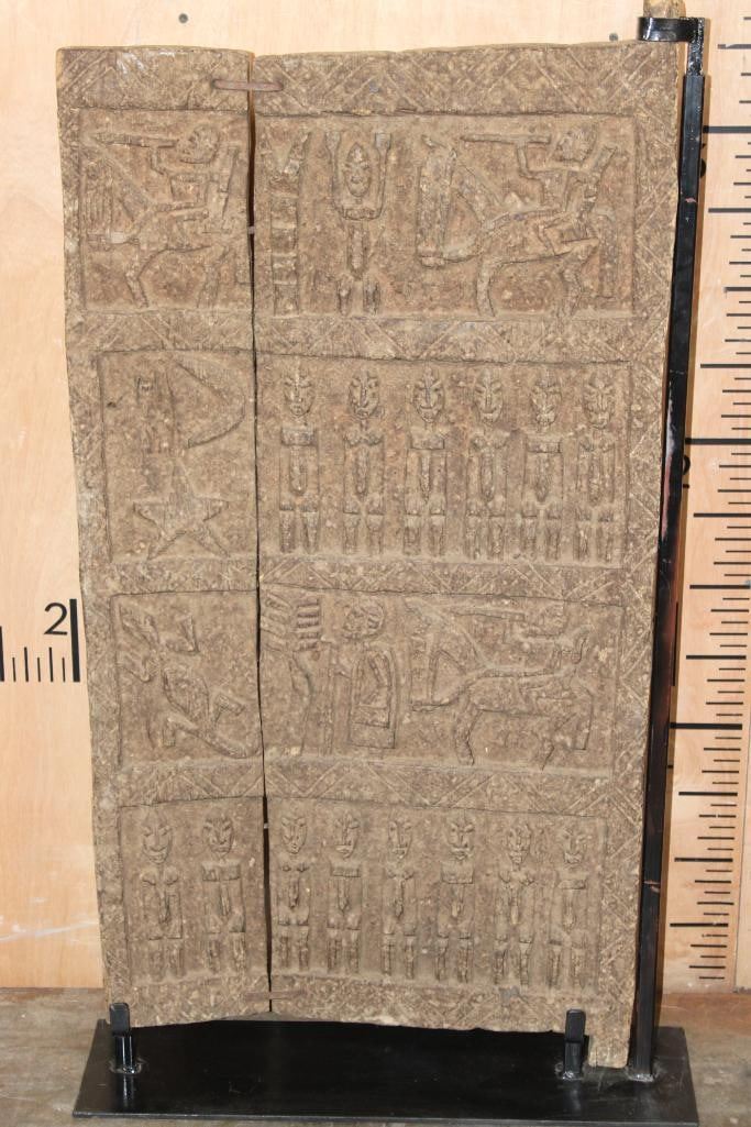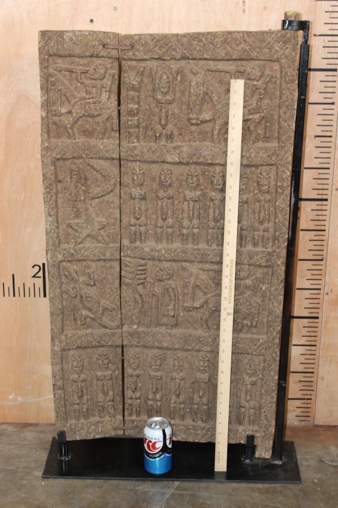 Lot 125 Big Antique Hand-carved Wood African Granary DOOR on a Custom Metal Stand