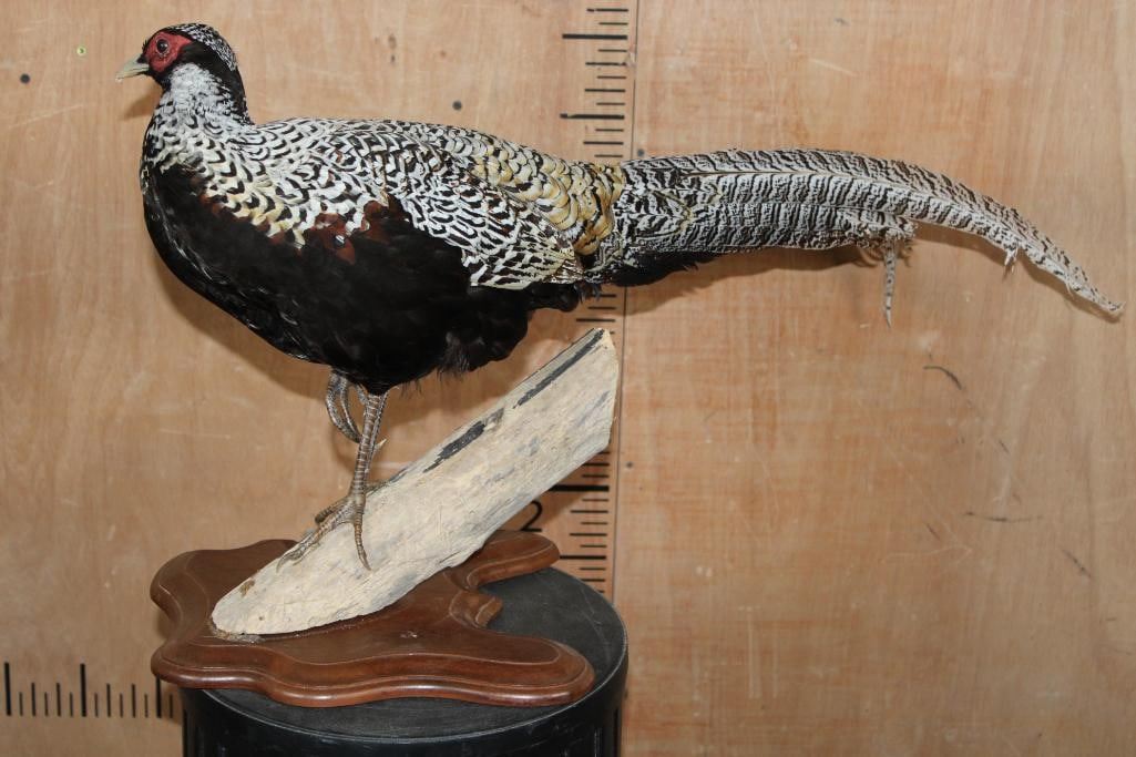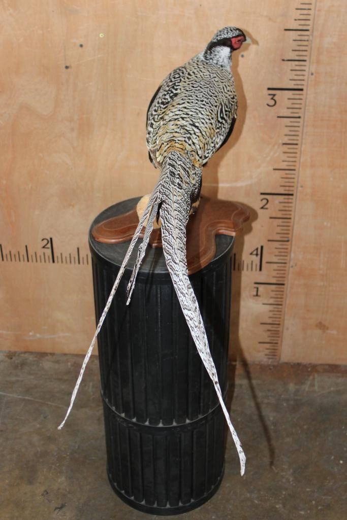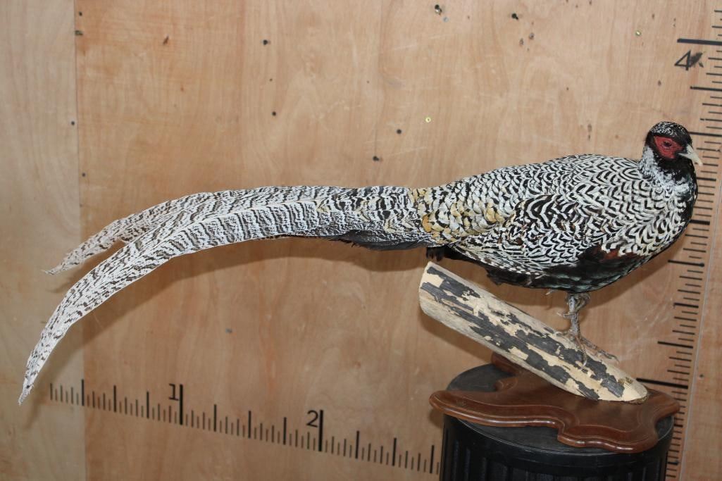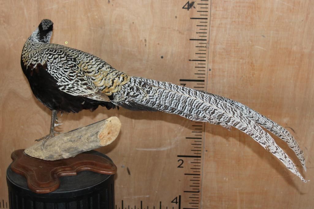 Lot 181 SILVER REEVE'S PHEASANT Perched on a Log and Wood Plaque Base