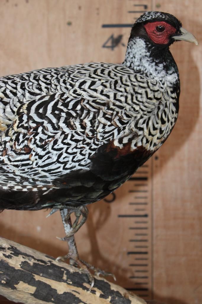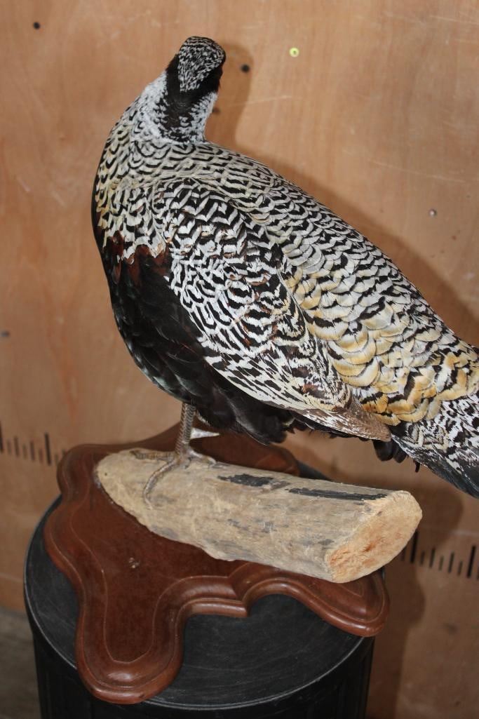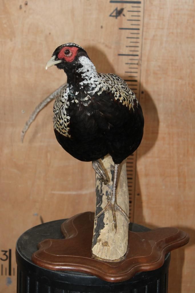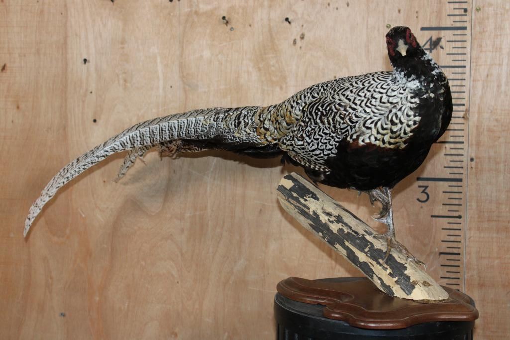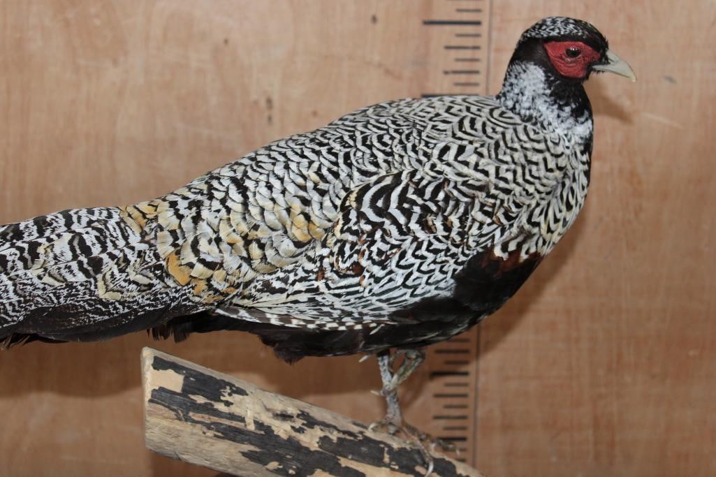 Lot 181 SILVER REEVE'S PHEASANT Perched on a Log and Wood Plaque Base