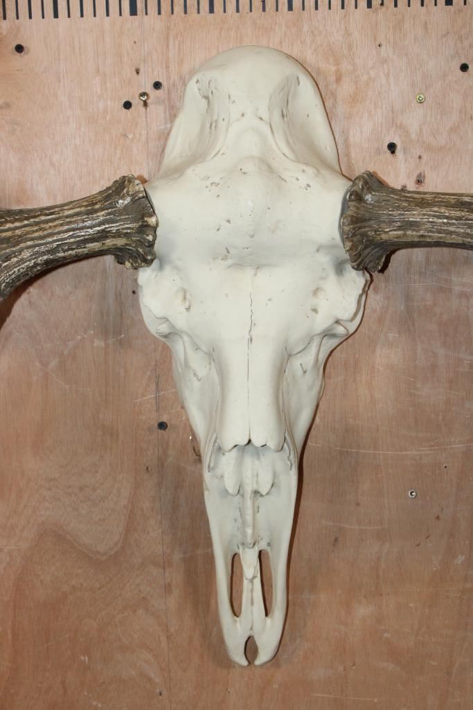XXL 27-Point Reproduction MOOSE Skull Euro Mount with Removable Reproduction Antlers. It has a 60" Spread and is in Good Condition. TAXIDERMY