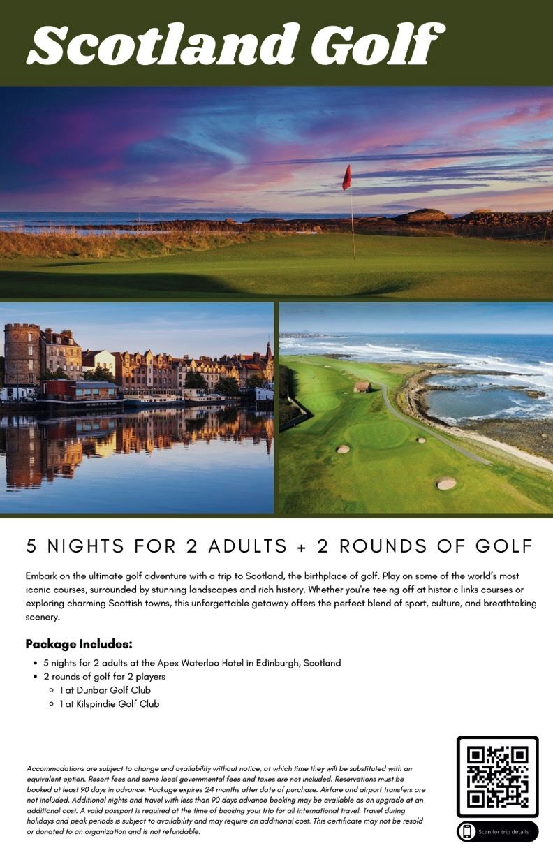 Embark on the ultimate golf adventure with a trip to Scotland, the birthplace of golf. Play on some of the world’s most iconic courses, surrounded by stunning landscapes and rich history. Whether you're teeing off at historic links courses or exploring charming Scottish towns, this unforgettable getaway offers the perfect blend of sport, culture, and breathtaking scenery.