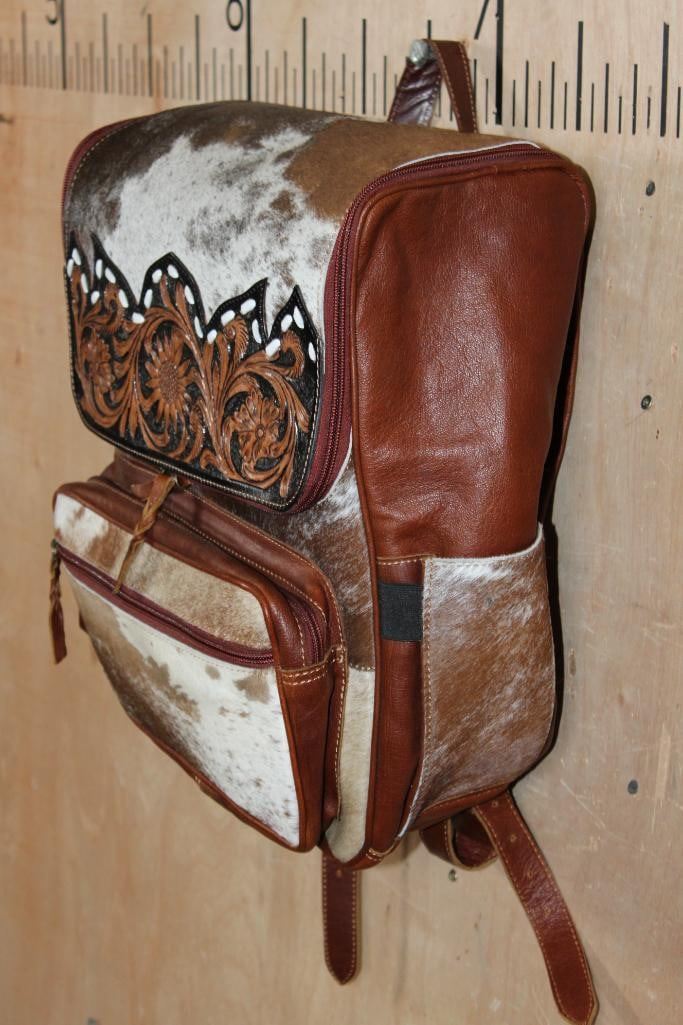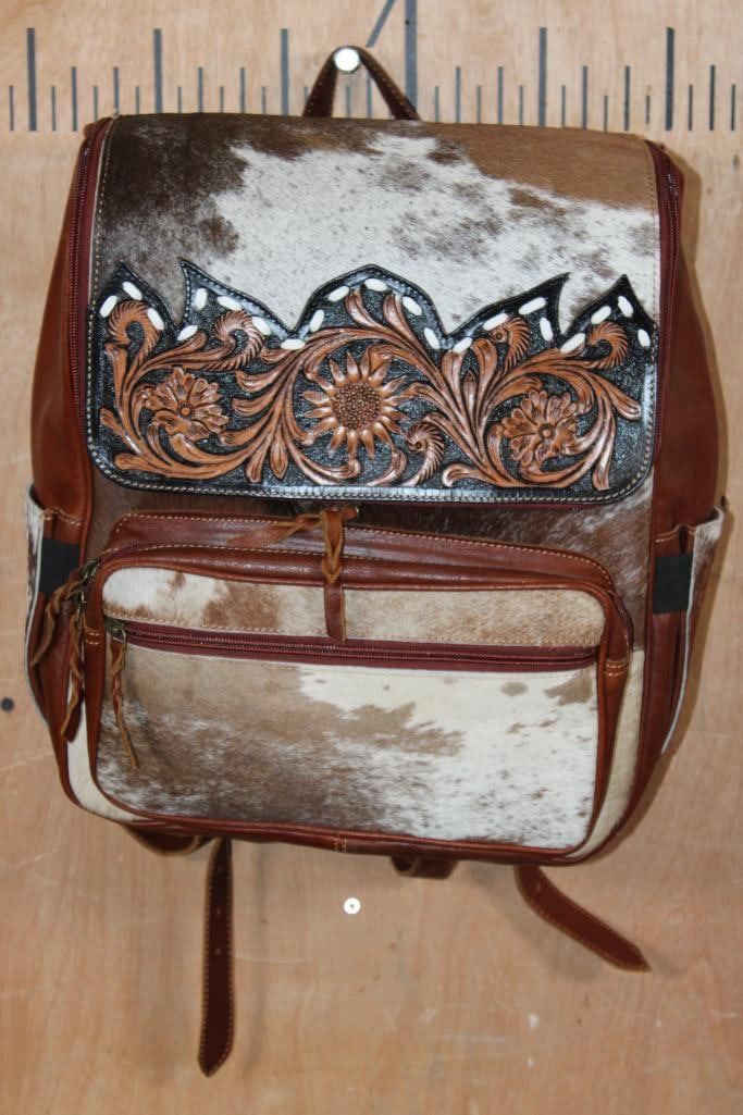 Lot 60 *Brand New* Western Cowhide and Hand-tooled Leather Backpack