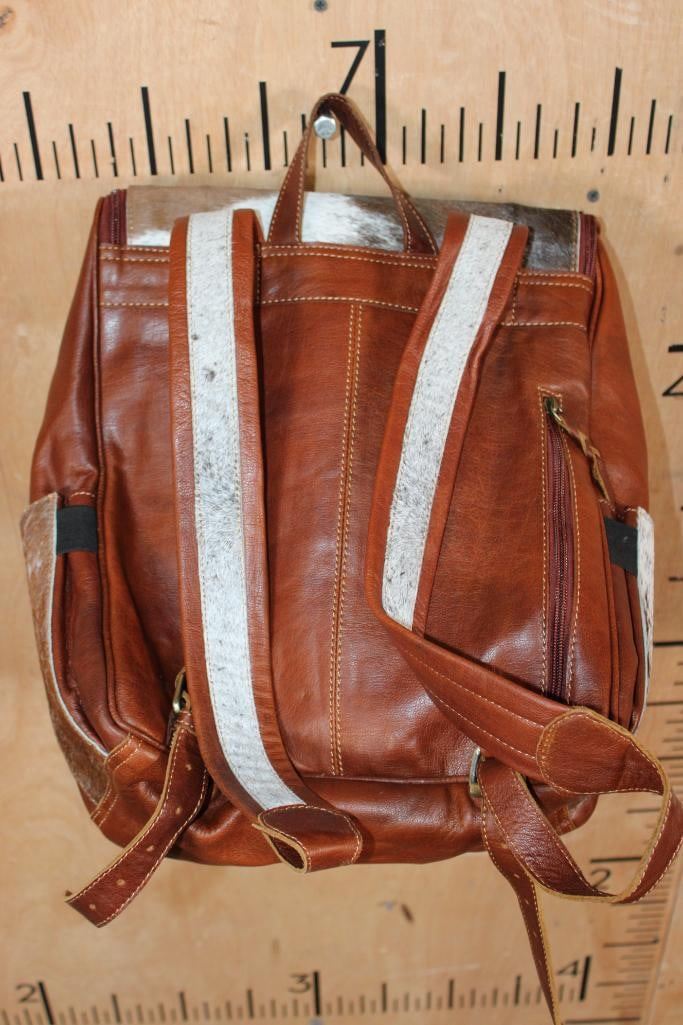 Beautiful *Brand New* Western Cowhide and Hand-tooled Leather Backpack. It measures 17" Tall x 12" Wide x 5.5" Depth. It has a zipper top closure, 2 front zipper compartments on the front, and cowhide on the adjustable buckle straps. This is a multi-functional carry-all, commonly used as a daily backpack, spacious travel bag, or a stylish diaper bag. TAXIDERMY BACKPACKS BAGS AND PURSES