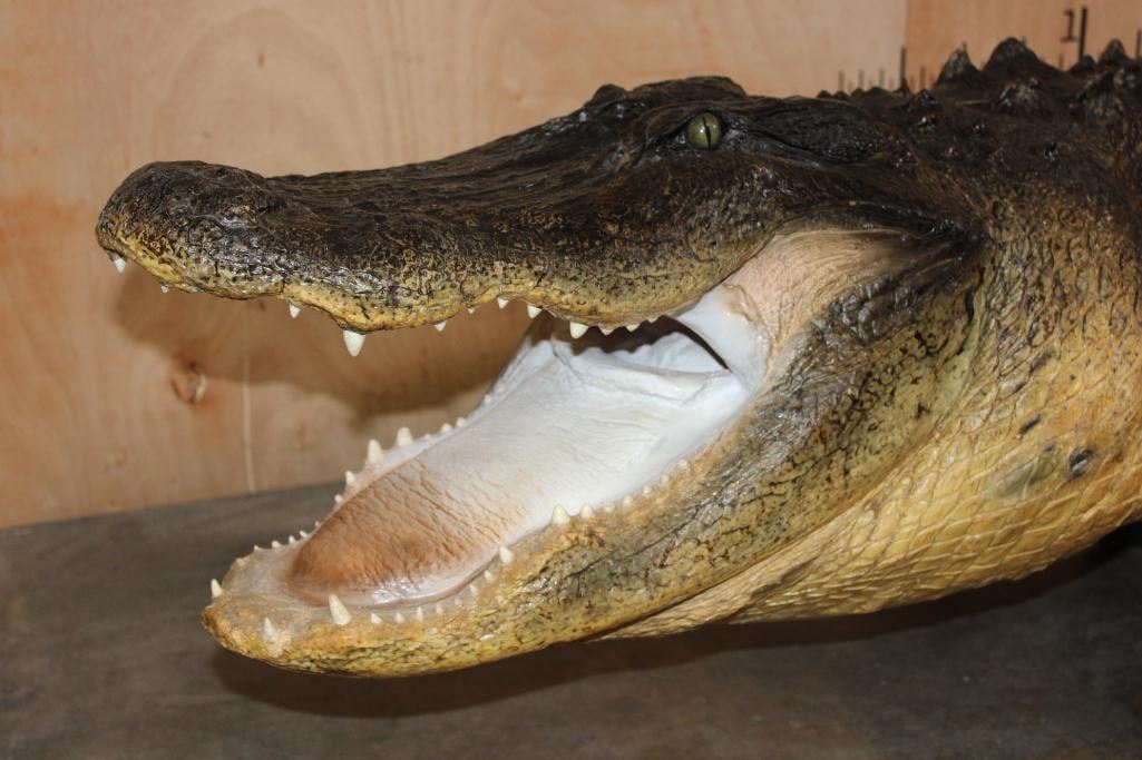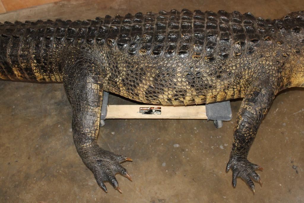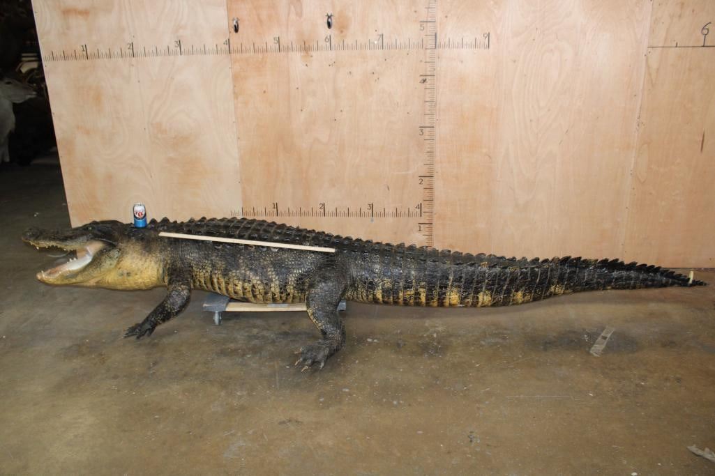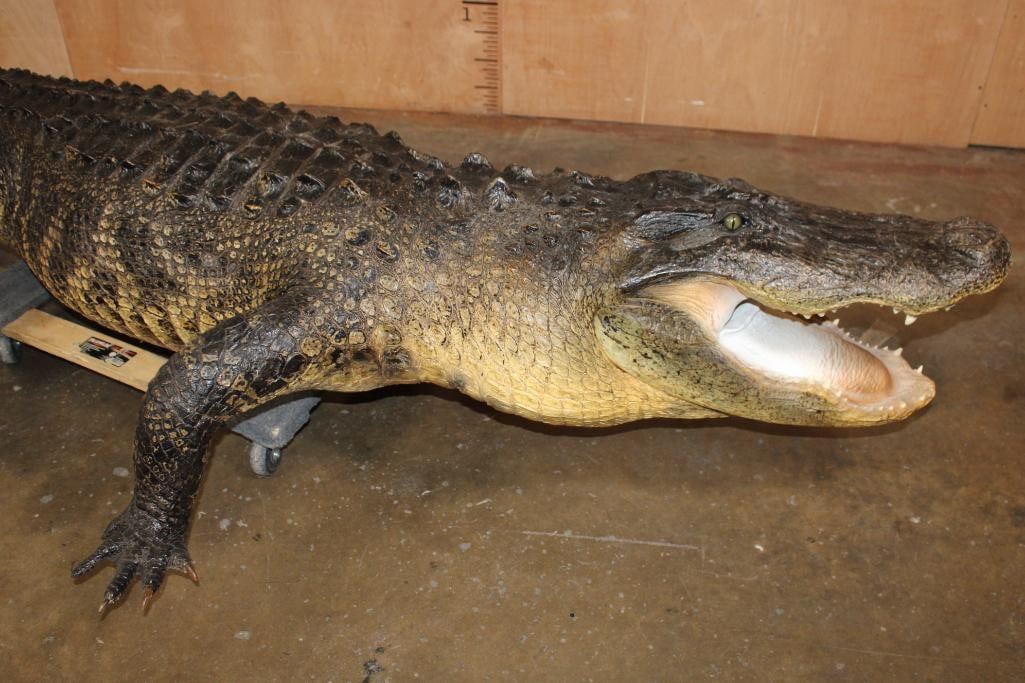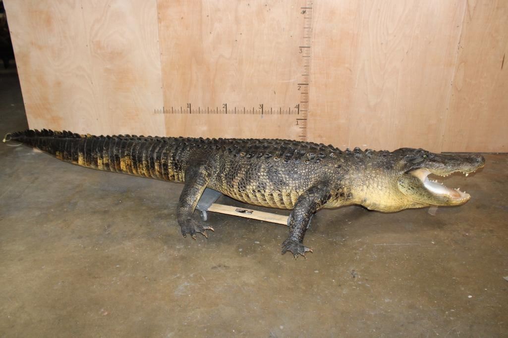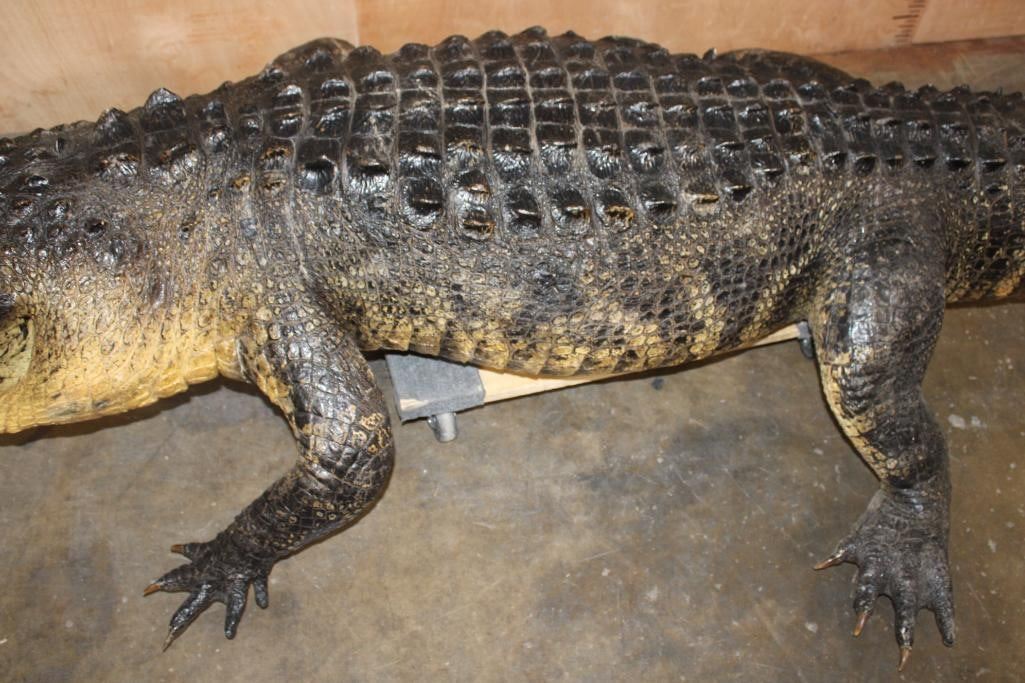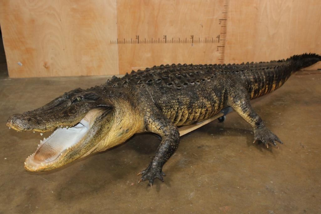 Very Nice, Clean, and Newer XXL Freestanding Life-sized Monster ALLIGATOR. It measures 12' 3" Long or 147" Long. It is in Very Good Condition. TAXIDERMY