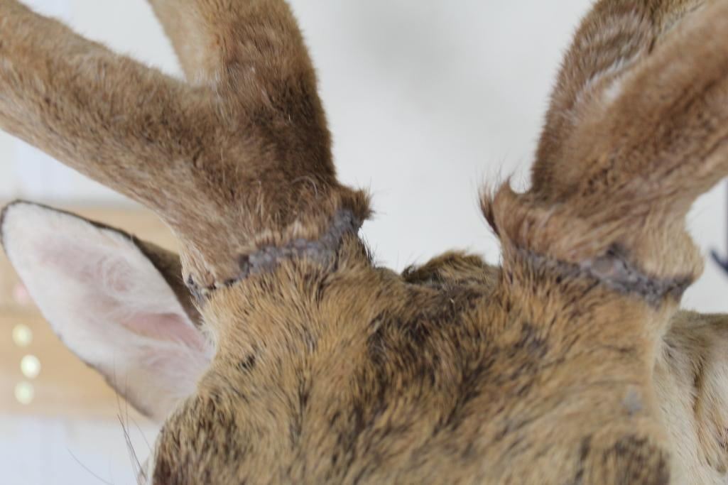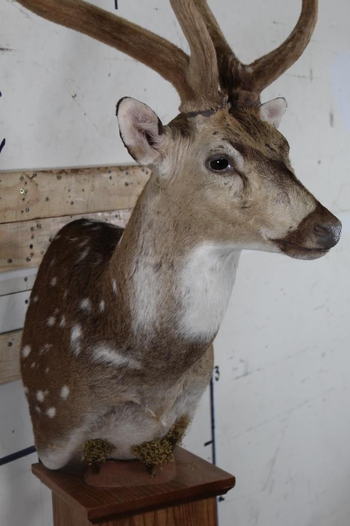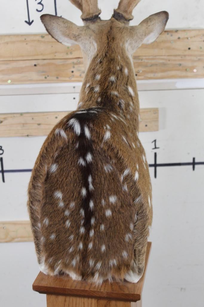 Lot 232 AXIS DEER in Velvet Pedestal Mount with Axis Hide on All Sides of the Base