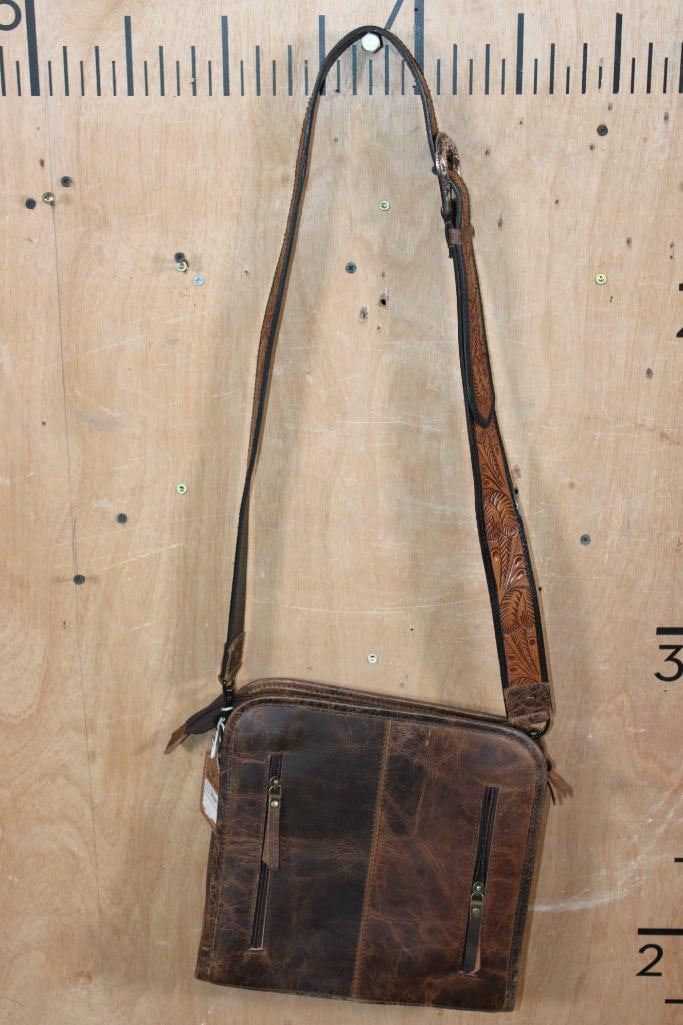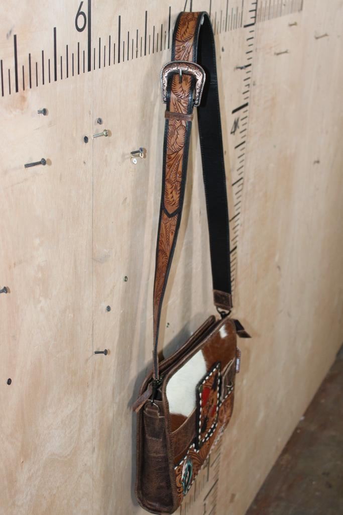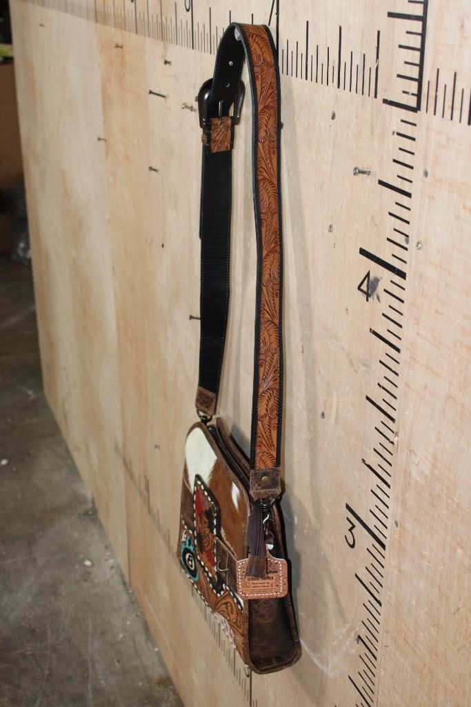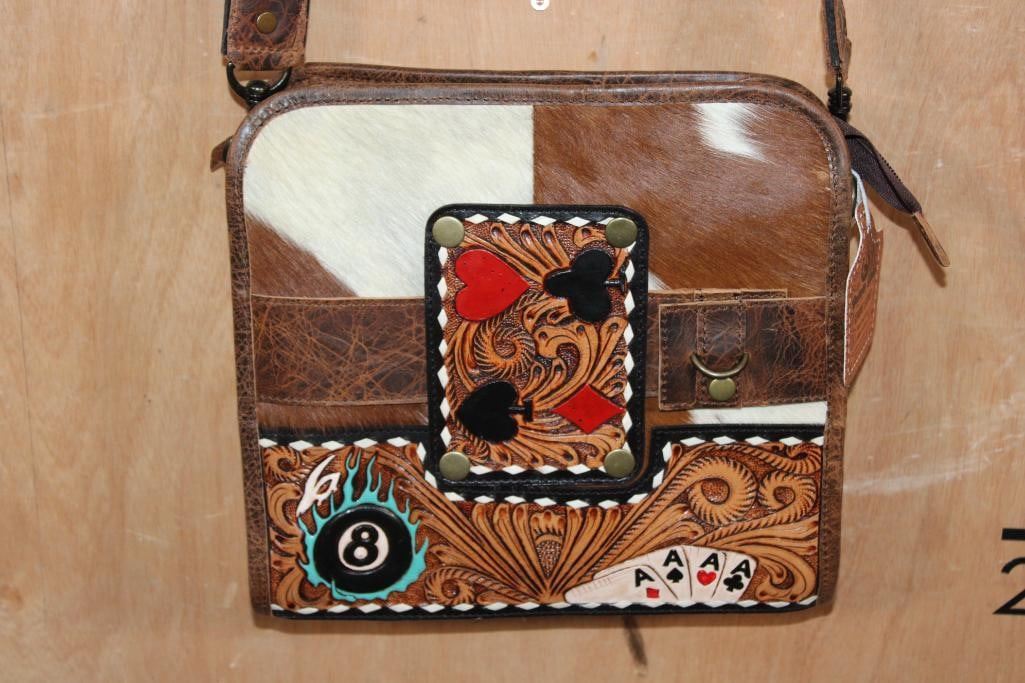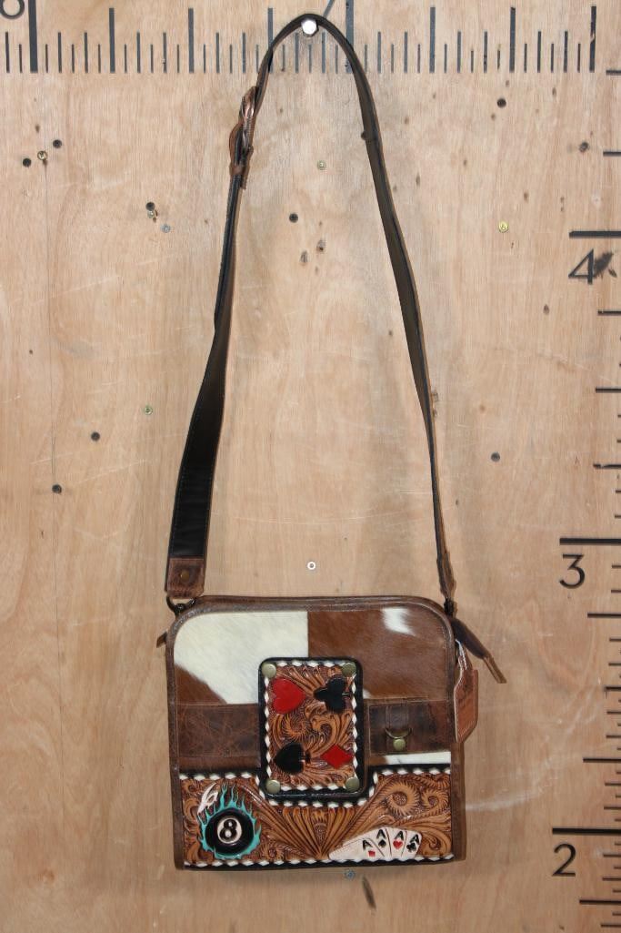 Lot 284 *Brand New* Western Tooled Leather and Cowhide Crossbody BAG with Gambling Inspired Elements