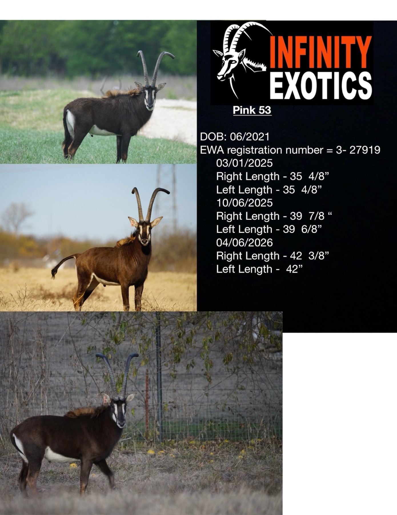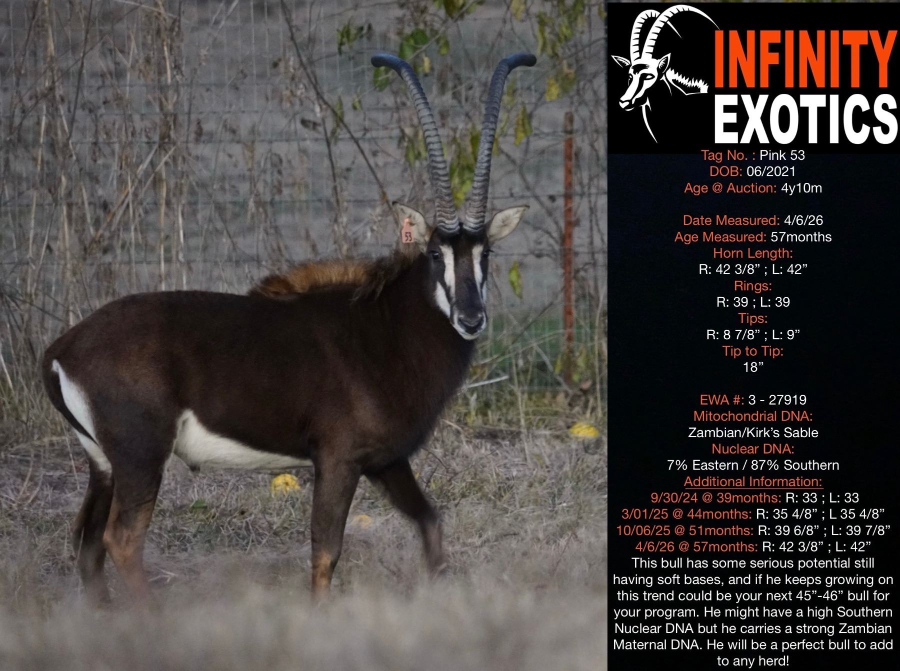 Four and a half year old mature Sable bull from our friends at Infinity Exotics. This bull has the potential to hit 45" or more if he continues to grow the way he has been growing by Fall of 2026.