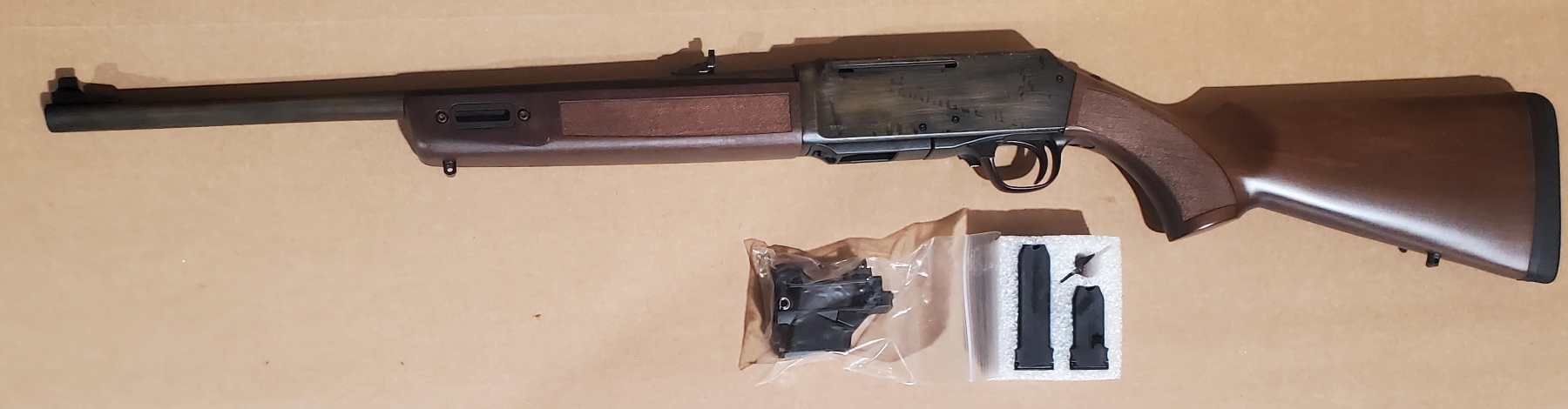 NEW in box. Includes proprietary 5 and 10 round mags as well as a swappable magwell for standard Glock mags.