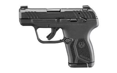 Ruger, LCP MAX, Double Action Only, Semi-automatic, Polymer Frame Pistol, Compact, 380 ACP, 2.8" Barrel, Nitride Finish, Black, Tritium Front Sight with White Outline and Drift Adjustable Rear Sight, Manual Thumb Safety, 10 Rounds, 1 Magazine, Includes Soft Pocket Holster and Magazine Loader