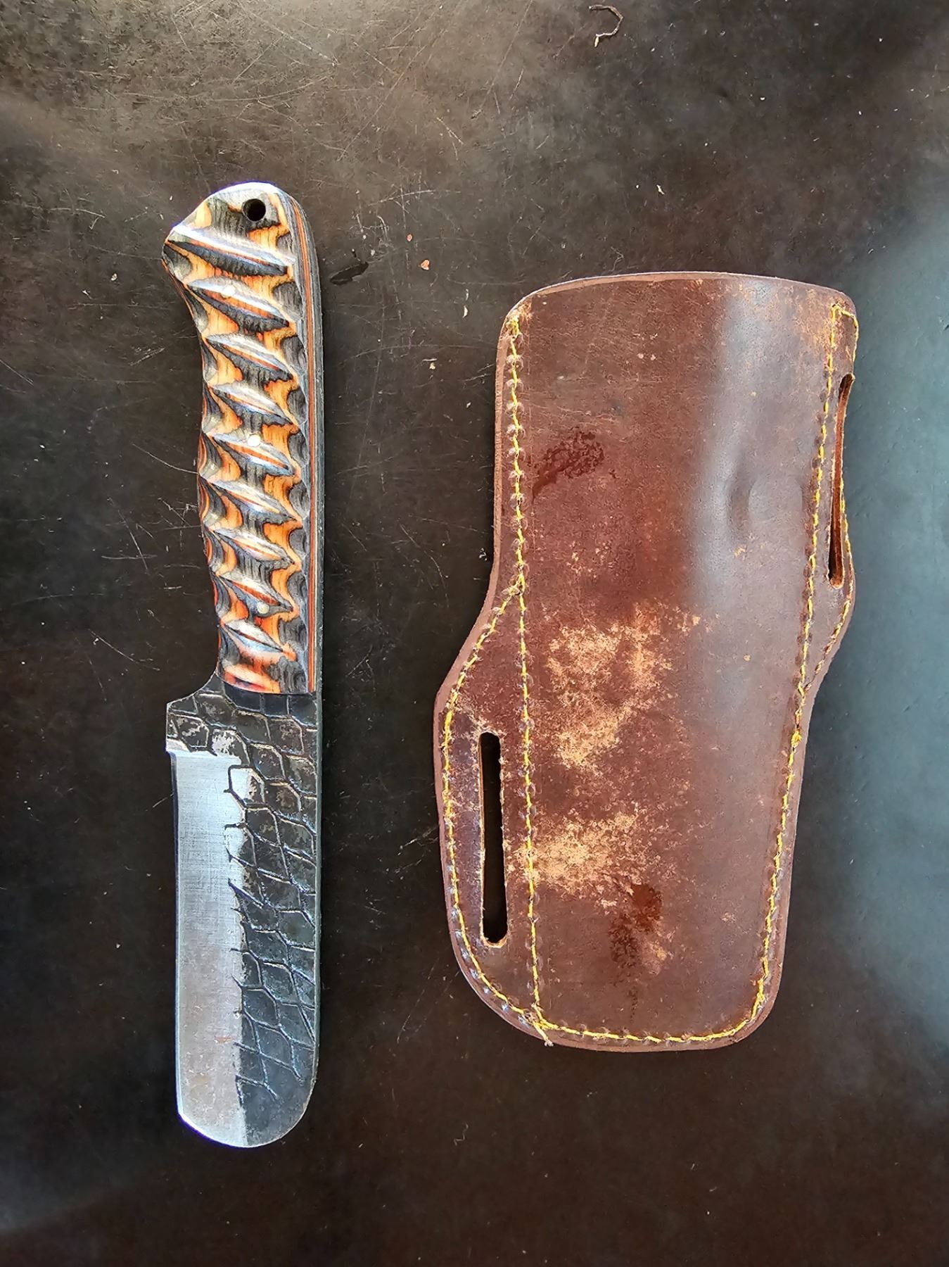 Hand Forged Steel Knife w/ Leather Sheath