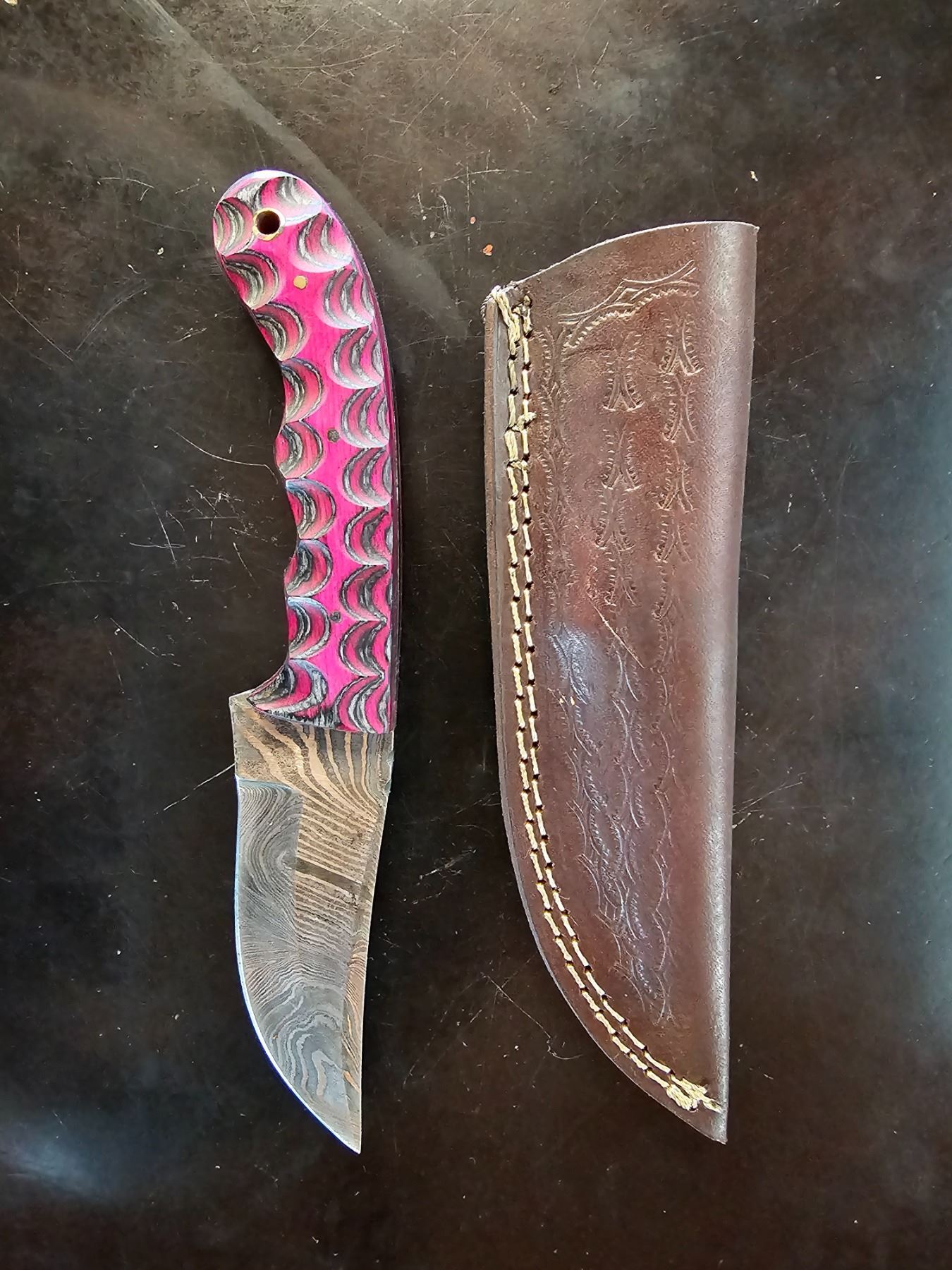 Hand Forged Damascus Steel Knife w/ Leather Sheath